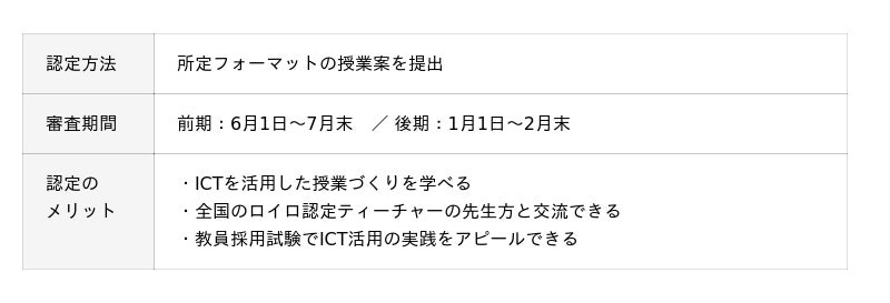 児童生徒主体の授業デザインができる教職課程の学生を「ロイロ認定ティーチャーJr.」として認定する制度です。教員採用試験でのアピールポイントにもなります。