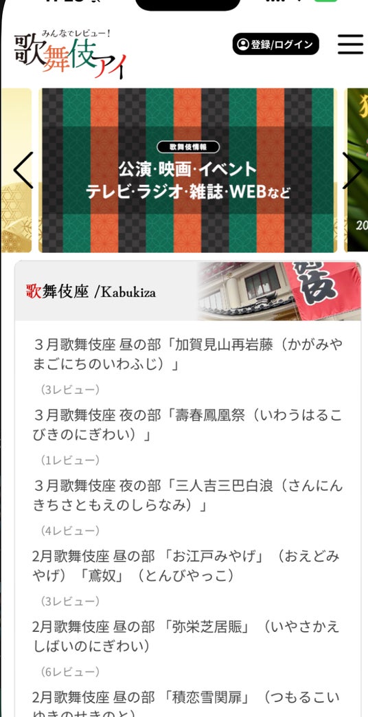 「歌舞伎アイ」は、歌舞伎公演に関する感想・評価・おすすめポイントをユーザー同士で共有できるどきづけとなります。PC・スマートフォンのどちらからでも快適に楽しめます。