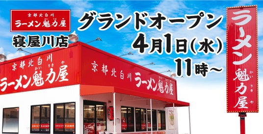 京都北白川ラーメン魁力屋をチェーン展開する株式会社魁力屋(https://corp.kairikiya.co.jp/本社:京都市中京区、代表取締役社長:藤田 宗、以下魁力屋)は、2026年4月1日(水)に「京都北白川 ラーメン魁力屋 寝屋川店」を大阪府寝屋川市にグランドオープンいたします。