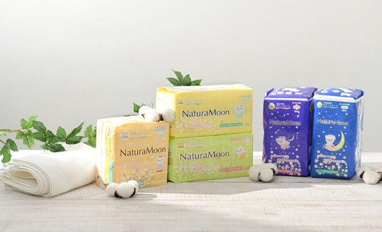 特に人気が高いのは、天然素材にこだわったナチュラル生理用品。デリケートな肌に触れるトップシートには、天然コットン100%の不織布を使用しています。また、トップシートは塩素漂白ではなく、過炭酸ナトリウムによる酸素漂白を行い、肌への負担を極力減らしました。経血を吸収するとジェル状に固まる高分子吸収材(ポリマー)を使用せず、天然由来の綿状パルプのみで経血を吸収します。燃やしてもダイオキシンが発生しないため、環境にもやさしいのが特徴です。