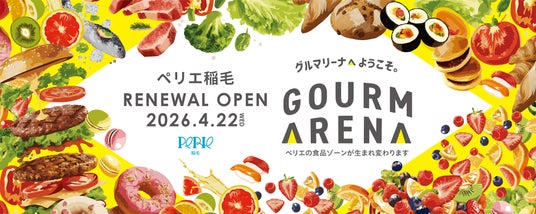 株式会社千葉ステーションビル(本社:千葉市中央区、代表取締役社長:杉村 晶生)は、2025年4月より全面改修を進めていたJR稲毛駅直結の商業施設「ペリエ稲毛」の食品ゾーン「フードスクエア」の名称を「GOURMARENA(以下、グルマリーナ)」に改め、2026年4月22日(水)にリニューアルオープンいたします。新たな食品ゾーンには、19ショップの新店と、従来からの人気店を合わせ合計38ショップが出店。利便性と専門性を兼ね備えた空間で、日常の“食”のシーンに“トキメキ”をお届けします。