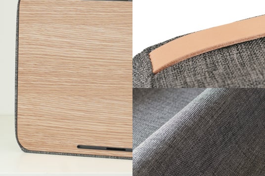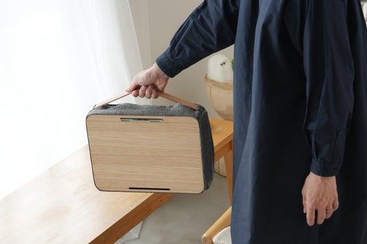 機能性だけではなく、木製天板、家具用生地、本革ハンドルを採用することで、小さくても家具として長く使い続けられるデザインに仕上げています。