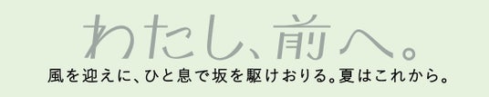 今回発売する「和ハッカの香り」のパッケージでは、「わたし、前へ。~風を迎えに、ひと息で坂を駆けおりる。夏はこれから。~」をテーマに、移り変わる季節に後押しされ、強く前向きに変化していく内面を表現し、坂を駆け降り、風を感じるような躍動感のあるデザインに仕上げました。