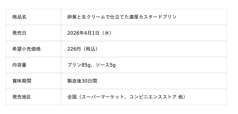 トーラク株式会社(本社:兵庫県神戸市東灘区向洋町西5丁目5番、代表取締役社長:毛利 功一郎)は、「卵黄と生クリームで仕立てた濃厚カスタードプリン」を2026年4月1日(水)から発売いたします。