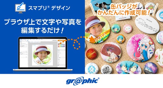 株式会社グラフィックネットプリント(本社:京都市伏見区、代表取締役社長:西野能央、以下「当社」)はネット印刷事業にて、Webサイト上で印刷物のデザインが作れるサービス「スマプリ(R)デザイン」に缶バッジを追加しました。