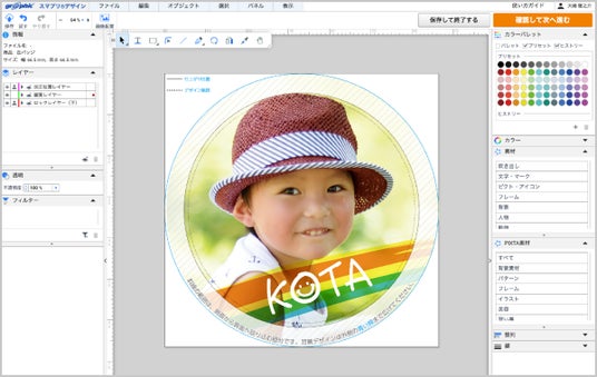 「スマプリ(R)デザイン」の缶バッジ編集画面