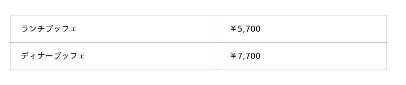 DINING & BAR TABLE 9 TOKYO メニュー(品川プリンスホテル)