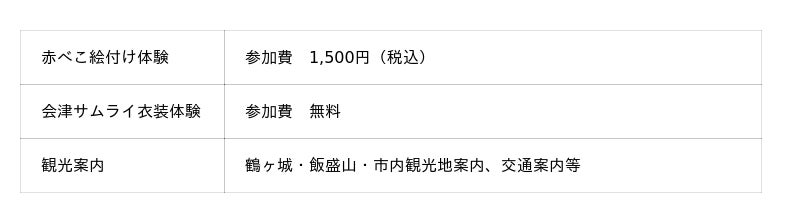 ※「会津サムライ衣装体験」は私服の上から着用し、1組10分以内で来場者機材にて撮影をお願いいたします。