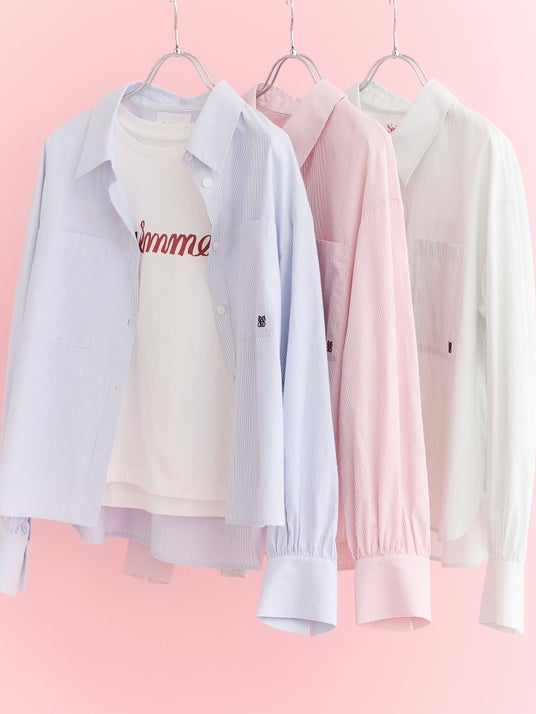 羽織にぴったりなワイドシャツは、オーバーすぎず着回ししやすいシルエット。さらっとした肌触りで、肌に触れてもストレスなく通年でご着用いただけるアイテム。ふとした瞬間に目に入る刺しゅうのポイントにキュン!さりげなさが大人かわいいストライプシャツです。