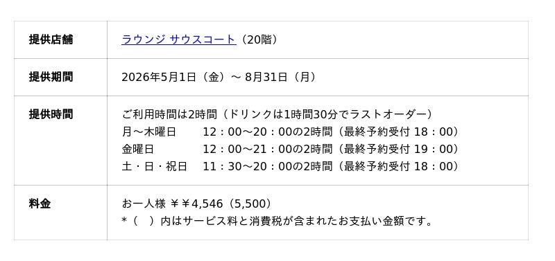 「小田急ホテルセンチュリーサザンタワー」(所在地:東京都渋谷区代々木2-2-1、総支配人:宮越 真理子)内、「ラウンジ サウスコート」(20階)では、初夏の心地よい風を感じる季節にぴったりの“メロン”を主役にした「メロンアフタヌーンティー」を2026年5月1日(金)から8月31日(月)までの期間限定で提供します。