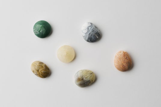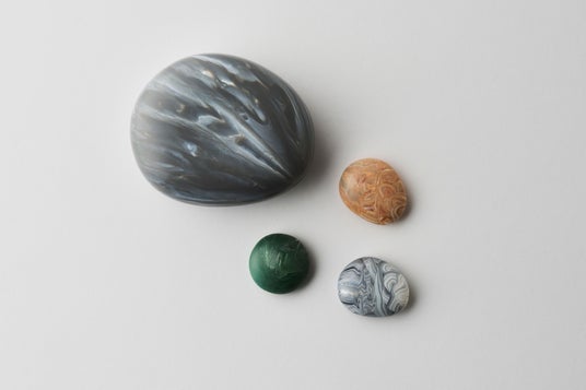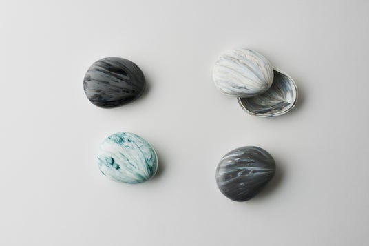 ストーンシリーズは、自然の石を思わせる丸みのある有機的なフォルムが特徴のデザインです。再生プラスチックを素材として使用しているため、色の混ざり方や模様は一点一点異なり、同じものは二つとありません。プラスチックでありながら石のような重厚感や独特の表情を持ち、素材の個性を活かしたデザインが魅力です。また、廃プラスチックを再利用することで、新しい価値を生み出すサステナブルなプロダクトとなっています。