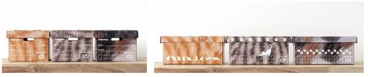 ボックス表面にはねこの毛並みを表現したデザインが印刷されており、茶トラ・キジトラ・三毛猫の3種類から選ぶことができます。また、側面にもねこの肉球やねこのシルエットをあしらい、101のロゴもねこ仕様にするなど、細かな部分までねこの世界観を表現しました。