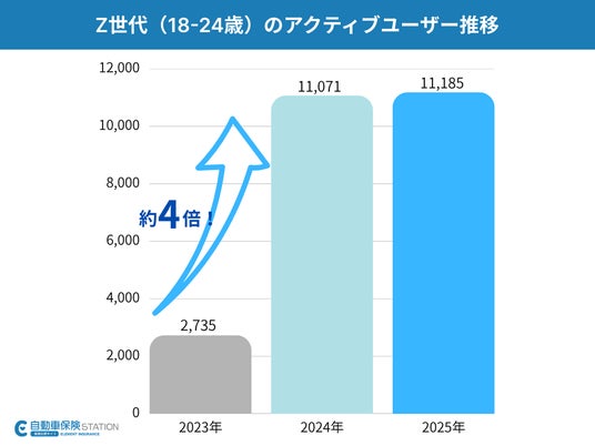Z世代(18-24歳)のアクティブユーザーが1年で約4倍に