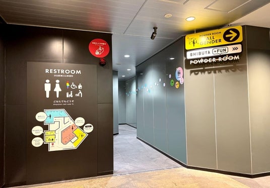 渋谷駅前エリアマネジメントは、渋谷区と連携し渋谷駅東口地下広場の公衆トイレ及びパウダールームの運営を行っております。駅前再開発が行われているエリアのまちの魅力を高める為、公共空間を含む活動エリア内の屋外広告物の掲出や工事中のにぎわい創出、駅周辺の将来像の情報発信やエリア一体イベントの実施など、公益的な取組みを実施しています。