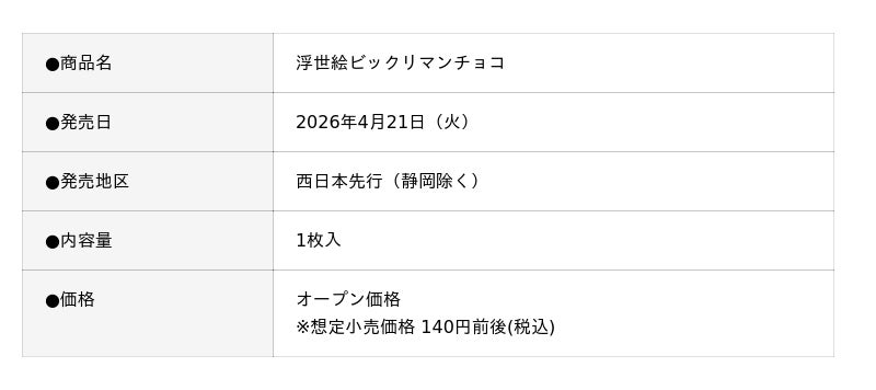 株式会社ロッテ(東京都新宿区、代表取締役社長執行役員:中島英樹、以下ロッテ)は、2026年4月21日(火)より「浮世絵ビックリマンチョコ」を西日本先行で発売します。