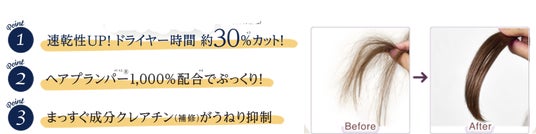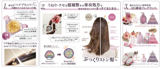 – ヘアプランパー(R)*¹*²のツヤ髪成分を強化して、乾燥でも湿度100%でも、いつでもぷっくり髪!