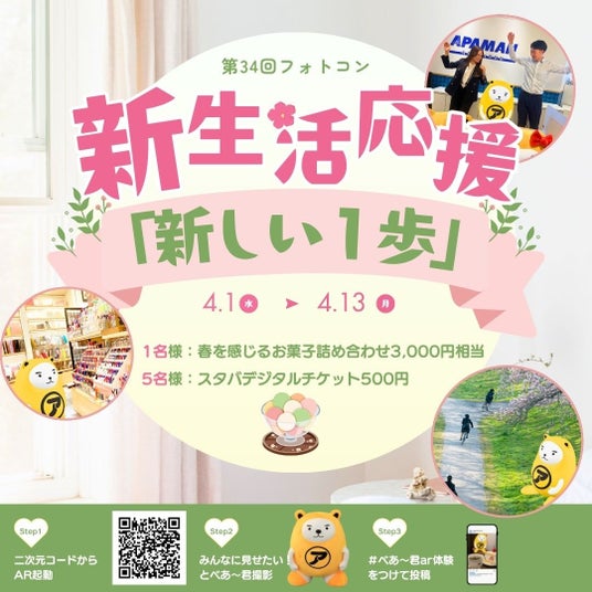 賃貸住宅仲介業において、店舗数*1 および契約数*2 ともに No.1 を誇る APAMAN株式会社(東京都中央区、代表取締役社長:山崎戒)が展開する「アパマンショップ」は、当社公式キャラクター「べあ~君」を活用した参加型企画「第34回 べあ~君ARフォトコンテスト」を、2026年4月1日(水)より開催いたします。