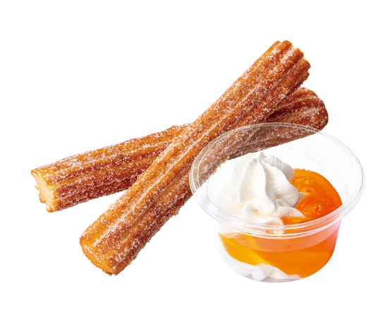 商品概要:北海道産のメロンを使用した濃厚な甘みが特長のメロンソースをかけたホイップクリームに、サクッともちもち食感のチュロをディップしてお楽しみいただけるスイーツです。