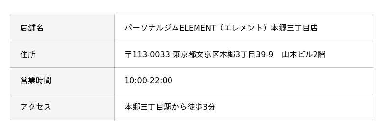 ウエイトトレーニングお申込みページ:https://element-gym.com/element-top/all/hongo-3cyome/