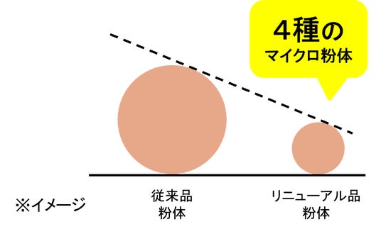 ◇4種のマイクロパウダーを配合。従来品よりもさらに微細な粉体が肌に均一にフィット。毛穴・赤み・色ムラをしっかりカバーしながら、厚塗り感のないなめらかな肌に整えます。