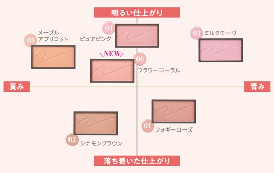 新色「06 フラワーコーラル」はパーソナルカラーを問わず使え、自然に仕上がるカラー。白を配合して調色した柔らかな発色なので、自然な柔らかさのある多幸感が演出できます。