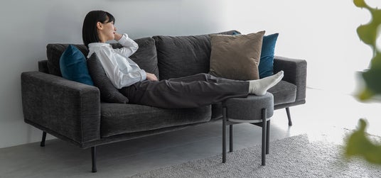 ふだんはソファ横のサイドテーブルとして使い、くつろぎたいときだけ裏返してオットマンとして使うことができます。必要な時だけ、必要なカタチで使えるのがモーフィンの強みです。