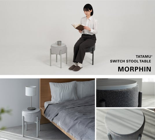 トランスフォーム家具ブランドTATAMU(R)から、暮らしのシーンに合わせてテーブル⇔スツールと役割を切り替えることができるスイッチ家具「MORPHIN(モーフィン)」が新発売。スタッキングにも対応。