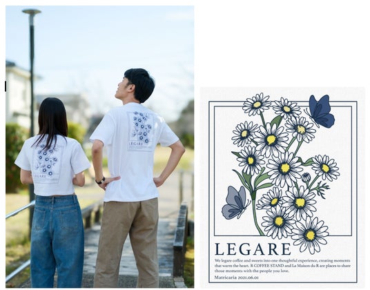 今回の催事テーマは「LEGARE」。創業日である6月1日の誕生花・マトリカリアをモチーフにしたTシャツを、高島屋新宿店にて発売します。小さな花が集まり咲くマトリカリアのように、人と人とのつながりを大切にしたい――そんな想いを込めました。