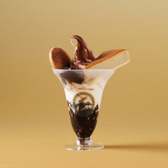 コーヒーのコクやほろ苦さが詰まったコーヒーゼリーに、ベイクドチーズケーキ風味のチーズケーキソフトを重ねました。上には『御用邸珈琲チーズケーキ』と『御用邸チーズクッキー』、ぷるぷるした食感のコーヒーゼリーをのせ、 コーヒーの程良い苦みと深い香りがひろがるコーヒーソース、芳醇な香りと上品な苦味あるココアパウダー、甘くて香ばしい砂糖のキャラメリゼとカカオニブ※をトッピングしました。チーズのミルキーな味わいや珈琲チーズケーキの奥深い風味、コーヒーゼリーやカカオニブの食感などそれぞれの味わいと相まった美味しさをお楽しみいただける贅沢なパフェです。