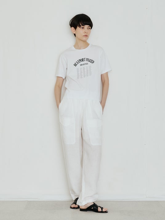 毎シーズン人気のミリタリーパンツを、やわらかく軽やかなリネン素材で仕立てたカーゴパンツ。ハードなミリタリーデザインと、しなやかなリネンの風合いが生み出す絶妙なミックス感が魅力の一枚です。今季はサイズ感を見直し、よりすっきりとしたシルエットにアップデート。リラックスした穿き心地を保ちながらも、洗練されたバランスで着こなしていただけます。夏のボトムスとして幅広いスタイリングに馴染む万能アイテムです。さらりとした肌触りと軽やかな穿き心地で、夏の装いに自然と馴染む一本です。