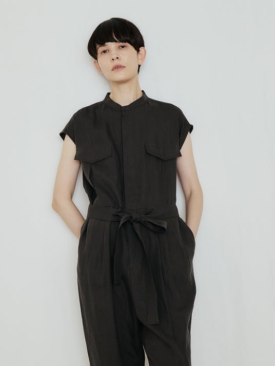 毎シーズン人気を集める TICCA のコンビネゾン。今季はシャツ仕立てのマニッシュなデザインで、すっきりとした印象に仕上げました。フレンチスリーブの軽やかなバランスが涼しげで、身体のラインを拾いすぎないリラックス感のあるシルエット。シンプルでありながらモードな表情も感じさせる、存在感のある一枚です。