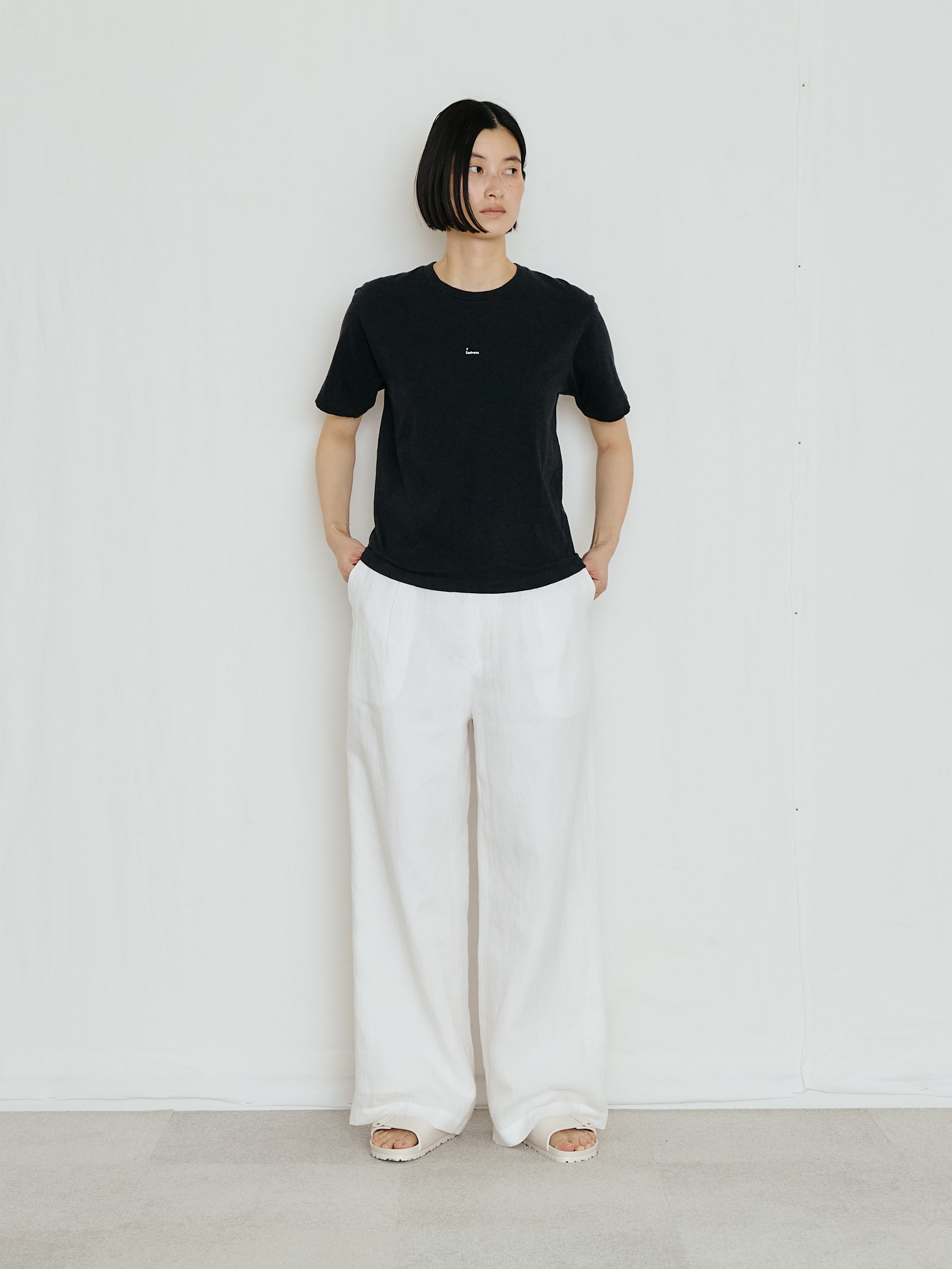 クリーンでマニッシュな印象のワイドタックパンツ。ゆとりのあるシルエットと、しっかりとしたフォルムが生み出す端正なバランスが魅力の一本です。程よい張り感を持ちながらもしなやかな素材感で、さらりと涼しい穿き心地。リラックスした着用感でありながら、きちんと感のある佇まいを保ち、夏のスタイリングを上品に整えてくれます。シンプルでありながら存在感があり、夏の装いに自然と馴染む一本です。