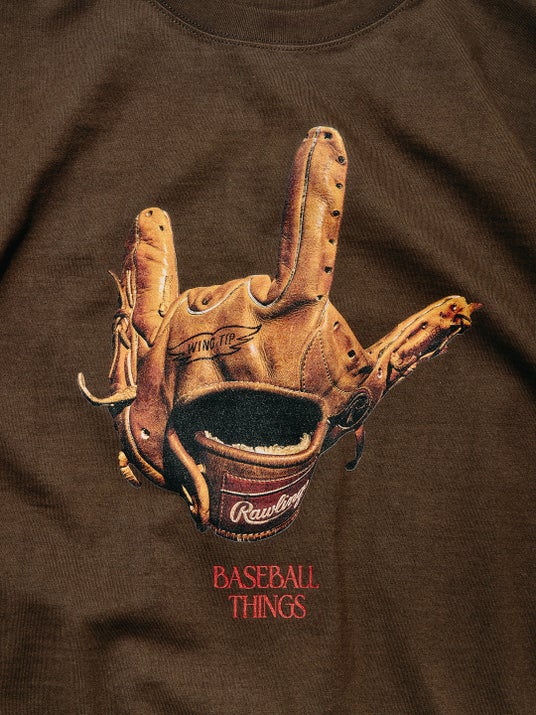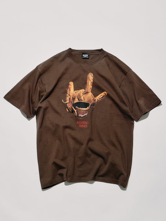 名作グラブ「XPG3」をベースに、ハンドサインで“LOVE”を表現したグラフィックTシャツ。“BASEBALL THINGS”=野球への想いをユーモラスにデザイン。