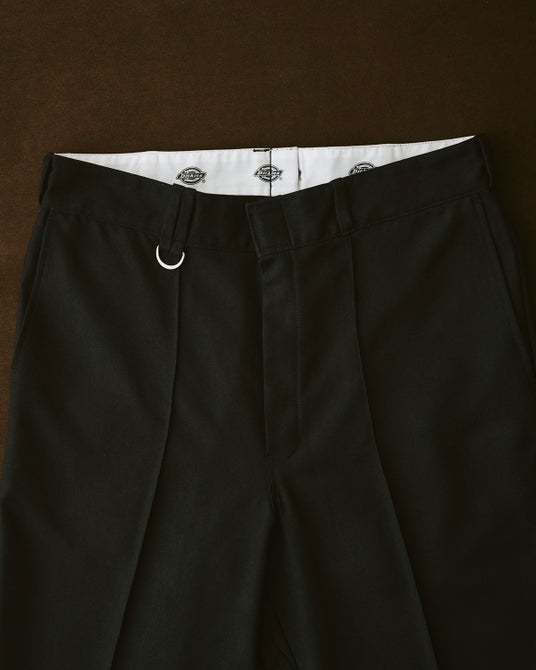 名作ワークをベースに再構築した「Pintuck Wide Slacks」。