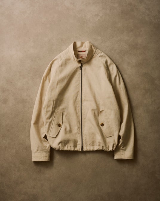 英国老舗「BARACUTA」初の別注モデル。名作「G4」をベースに、裾スピンドルと綿麻素材で現代的にアップデート。