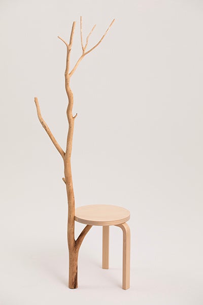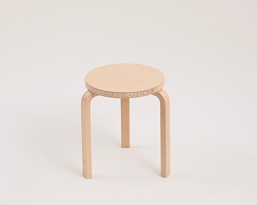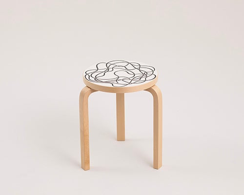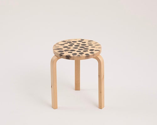 本企画では、アルヴァ・アアルトが1933年にデザインしたArtek〈スツール60〉をもとに、安藤忠雄、深澤直人をはじめとする建築家、デザイナー、アーティストなど15組のクリエーターが参加。それぞれの視点で手を加えた、一点ものの作品が展示されています。〈スツール60〉という共通のプロダクトに向き合いながら、素材に手を加え、構造を読み替え、あるいは視点をずらすことで、一脚ずつ異なる表情を持つ作品が生まれています。完成された名作に対して、何を受け継ぎ、どこに手を加え、どこに触れないのか。その判断の積み重ねが、一脚ずつ異なる表情となって現れています。