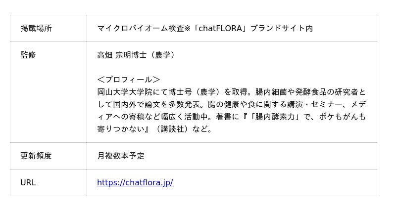 本コラムを通じて、腸活への関心が高い生活者に対する腸活の新常識をお届けするとともに、腸内フローラ検査を受けたユーザーがより実践に踏み込めるよう、支援することを目指します。