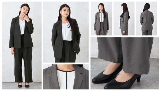 本商品は、シャツのような軽やかさに「接触冷感※1」「防シワ性※1」「マシンウォッシャブル」の3大機能を完備した高機能セットアップです。ジャケットは、ゆとりのあるボクシーなシルエットと広めのアームホール設計により、真夏でも風が通り抜ける抜群の通気性を実現しました。パンツは軽量感のある素材を使用しつつ、総裏仕様を採用しており、透けにくい安心感も魅力となっています。さらに、ファスナーを左脇に配置した構造により、気になる腰回りをスッキリと見せる体型カバーも叶えました。カラーは知的で着回しやすいブラックとチャコールグレーの2色を展開し、7号から15号までの幅広いサイズを揃えています。オンからオフまで気負わず着用でき、ご家庭で手軽に洗えるため、酷暑のあらゆるシーンを清潔かつスマートにアップデートします。