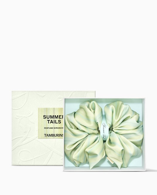 HAIR PERFUME SCRUNCHIEは、SUMMER TAILSの香りをほのかにまとったヘアアクセサリーで、スタイリングとフレグランスを同時にお楽しみいただける製品です。