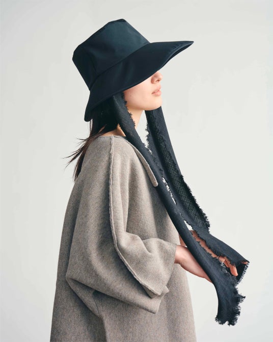 角度のついたブリムが自然な影をつくり、フェイスラインをすっきりと整える設計。取り外し可能なロープが装いのアクセントになるとともに、着用時の安定感も高めます。ニュアンスカラー3色展開。