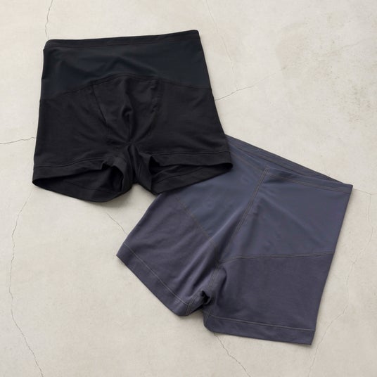 『腰こりらっくす(R) LUXE ボクサーブリーフ』も同様に、背面に6つの磁石を内蔵し、はくだけで腰まわりのコリにアプローチする管理医療機器です。ウエストにテープを使用せず、足口は折り返し仕様で肌あたりなめらか。 しなやかなストレッチ素材が腰まわりを程よく支え、安定感と快適さを両立しました。
