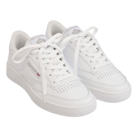 ベースとなったのは、80年代のクラシックなテニスデザインをヒントに、シンプルな美しさを追求した「Reebok CLUB C 85 VINTAGE」。「Reebok CLUB C 85 VINTAGE」ならではの、サイドに配置された「Union Jack(英国旗)」の国イギリスは、マリークワントのルーツでもあります。