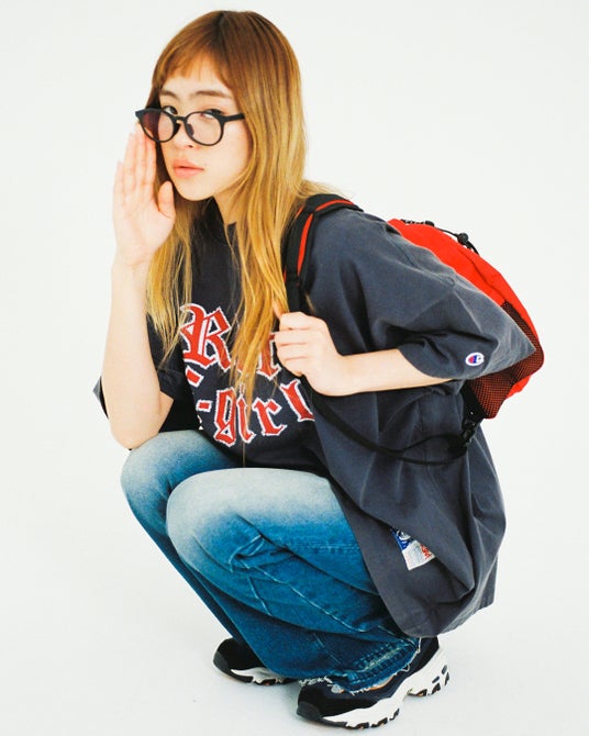 前シーズンに引き続き、 チャンピオンの人気ヴィンテージアイテムであるカレッジプリントが特徴の「Ohio State」をオマージュ。好評だった「Riot Grrrl (Riot Girl)」と「X-girl」 を組み合わせたグラフィックをプリントし、さらにブリーチ加工でヴィンテージライクに。袖に施したChampionのCロゴマークのワンポイント刺繍ワッペンと裾に縫われたFACEネームがさりげないアクセント。