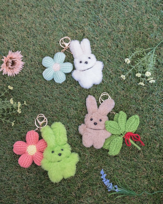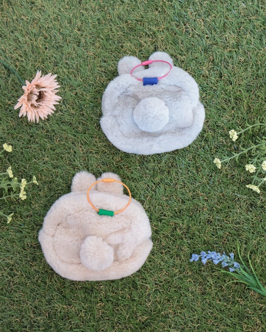 また、うさぎの毛並みをイメージしたポーチやぬいぐるみチャーム、ステッカーもラインアップ。ポーチには耳やしっぽのモチーフを、チャームには花などのディテールを取り入れ、うさぎらしい魅力を引き出すデザインに仕上げました。