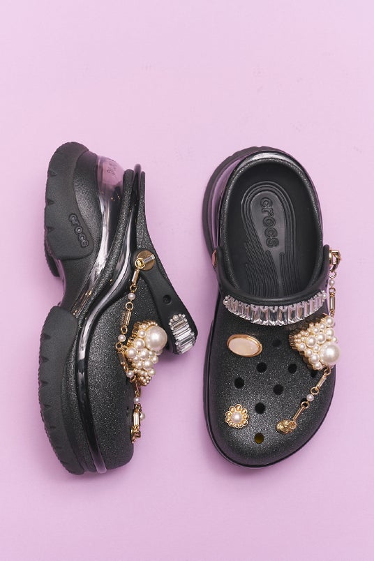 立体感のあるTPUバンドを重ねたミッドソールや、安定感のあるラグソール仕様により、デザイン性と機能性を両立。さらに、Jibbitz(TM)チャームに対応しており、アッパー26個+バックストラップ8個までカスタマイズが可能です。