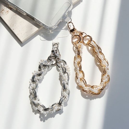 商品名:パール×チェーンスマホストラップ / ホルダー付き