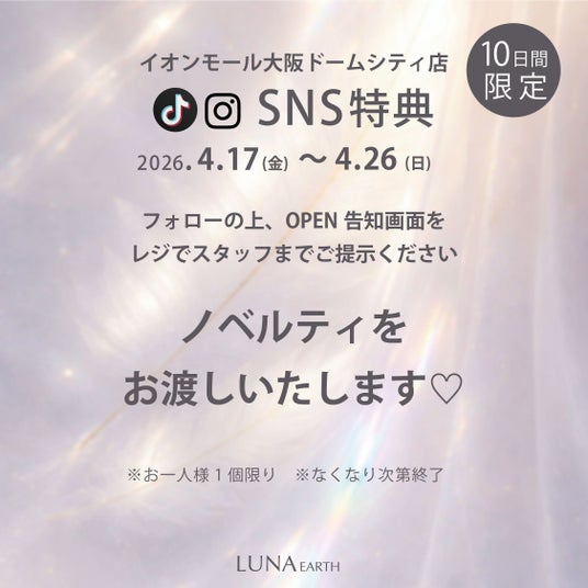 LUNA EARTHの公式TikTokまたはInstagramアカウントをフォローいただいたお客様を対象に、