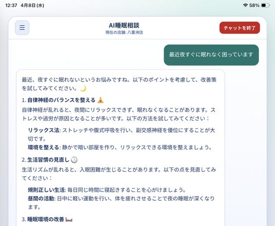 睡眠の専門知識を独自にAI学習した、AIチャットボットによる睡眠相談サービス。