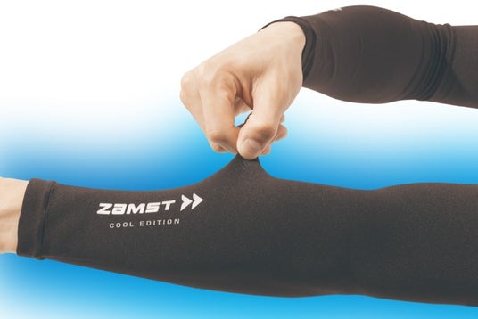 ▲新たに発売する「ザムスト アームスリーブ ロング COOL EDITION」