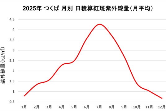 ※1)気象庁:「日積算紅斑紫外線量の月平均値(1997年~)」